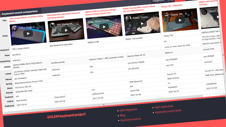 This is a keyboard sound database of 300+ samples with detailed data sheets, plus a comparison tool.
